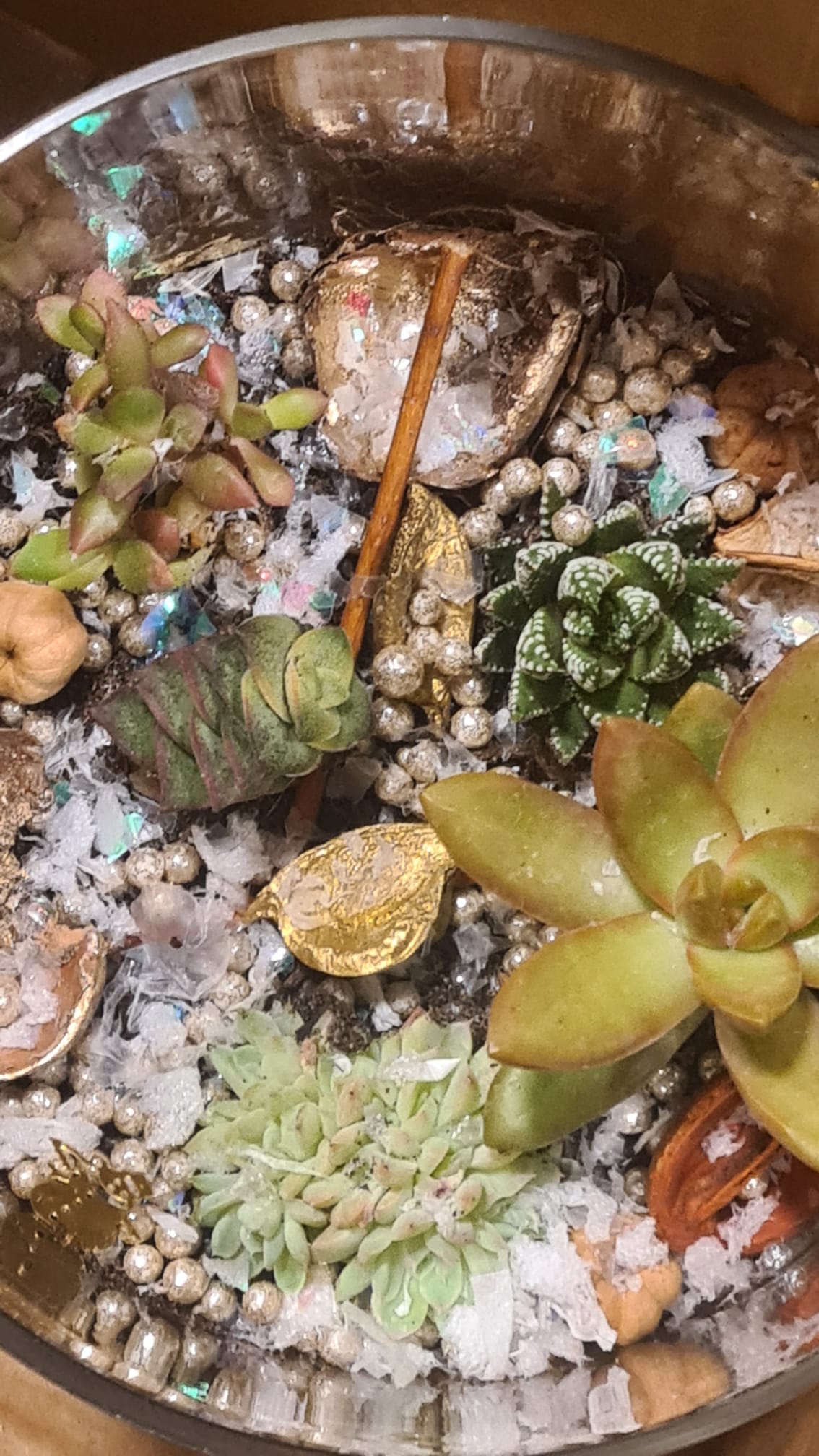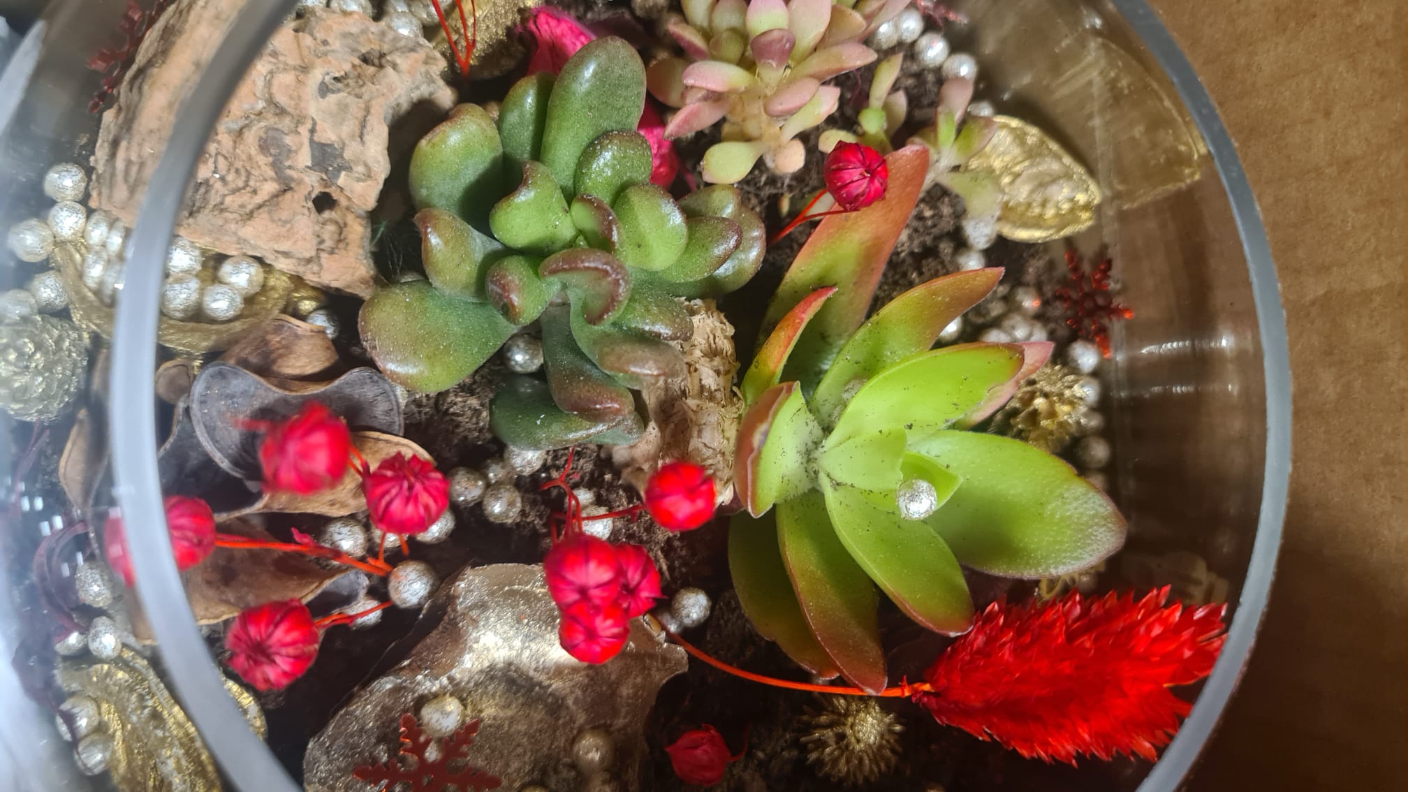 O rearanjare ușoară se poate face la fiecare *3–4 luni*: îndepărtezi frunzele uscate, ajustezi decorul și cureți sticla cu o lavetă moale pe exterior. In cazul in care plantele devin aglomerate in bol acestea se rearanjeaza intr-un vas mai spatios cu grija, pastrand amestecul si adaugand pamant de cactus in completare.